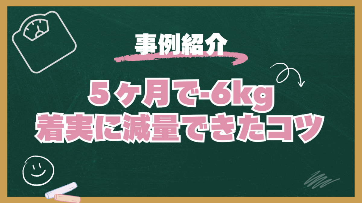 その結果、少しずつ体型が変わり始め、5か月後には合計で約6kgの減量を達成。